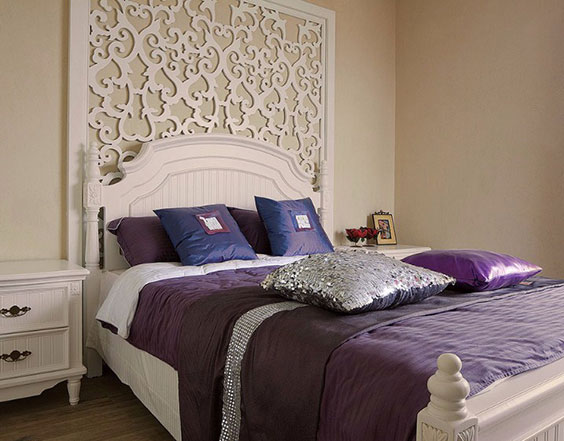 Фиолетовый. Самый волнующий цвет, притягивающий своей загадочностью и мистицизмом. Этот насыщенный оттенок в сочетании с пастельными тонами, сможет создать магическую атмосферу в спальне, взбудоражить воображение и погрузить в удивительный мир.