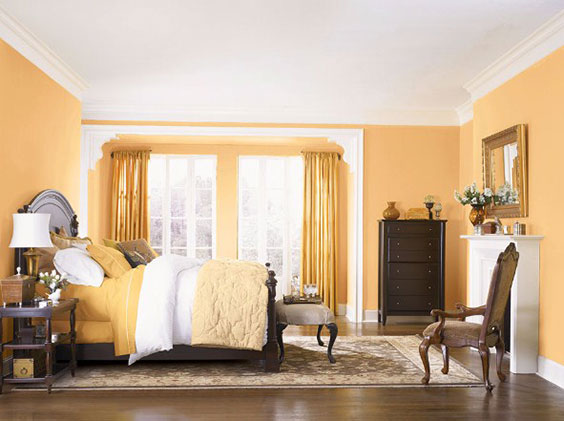 Оранжевый. Это динамичный, игривый цвет. Использовать в спальне его следует с особой осторожностью и только как дополнительный оттенок. При этом менее насыщенный оранжевый, например, персиковый, будет выглядеть очень гармонично, создавая спокойную атмосферу в спальне.