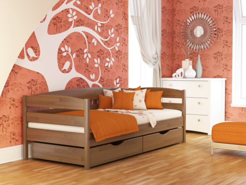 Если ваш ребенок испытывает нужду в удобном спальном месте – деревянная кровать Нота плюс подойдет ему как нельзя лучше. Основа из клееного бука удешевляет модель, и, одновременно, делает ее теплой, не лишая надежности. Форма и конструкция грамотна и удобна. Кровать имеет три стенки, что дает возможность расположить ее в спальне в комфортном для вас ракурсе. Кроме внешних очертаний, в изделии продумана каждая мелочь. В кровати есть ящики, которые выдвигаются с легкостью, а вместить позволяют большое количество белья. Некоторые родители предпочитают хранить в них игрушки, что также является существенным преимуществом этой модели.