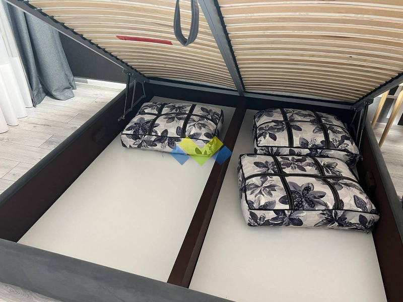 обратите внимание, что в комплектации с подъемным механизмом у кровати будет очень глубокий короб для хранения белья, это очень удобно, фактически у Вас под кроватью будет целый шкаф;