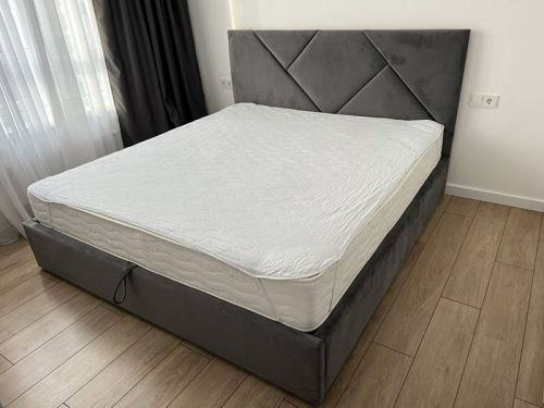 Мы искали мягкую двуспальную кровать, так как давно хотели себе в спальню именно такую. В магазинах в нашем городе очень маленький выбор таких кроватей, поэтому начали искать в онлайн магазинах. Увидели здесь эту кровать, она нам очень понравилась. Взяли с подъемным механизмом и заказали к ней матрас. Доставили достаточно быстро, я сам сложил за час. Велюр качественный, цвет очень нежный, идеально вписался в нашу комнату. Механизм работает хорошо, под кровать можно много всего сложить. Ламели не сильно гибкие, это хорошо. Матрас мне тоже очень понравился, он ортопедический.