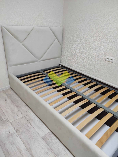 Кровать очень красивая, обивку подобрали по цвету штор, все получилось гармонично. Каркас качественный, ламели крепкие. Кровать хорошая! Спасибо!