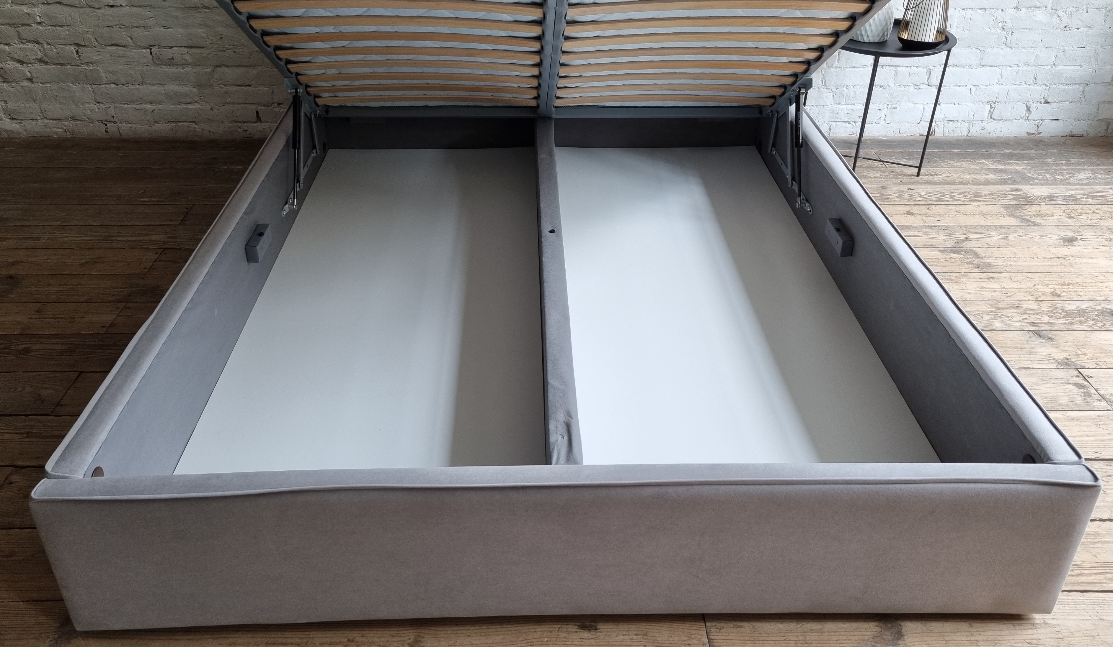 • обратите внимание, что в комплектации с подъемным механизмом у кровати будет очень глубокий короб для хранения белья, это очень удобно, фактически у Вас под кроватью будет целый шкаф;