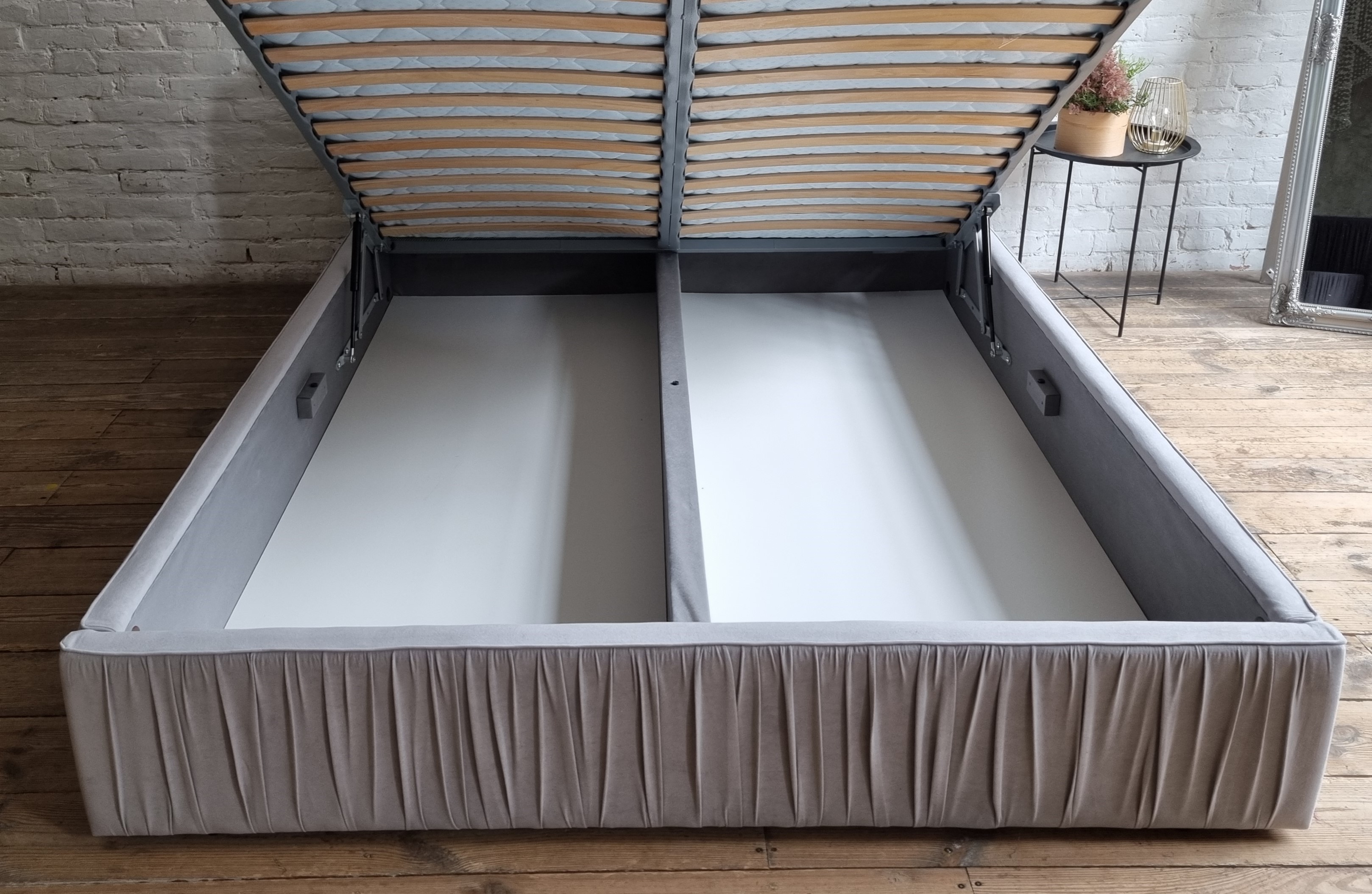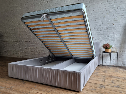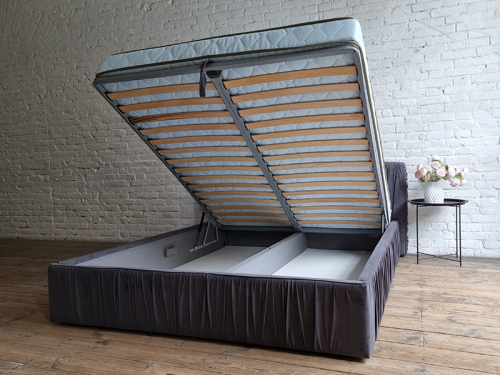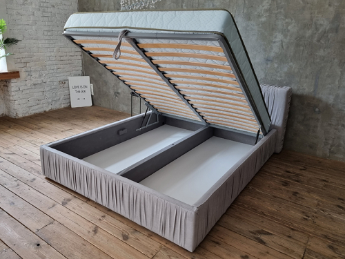 обратите внимание, что в комплектации с подъемным механизмом у кровати будет очень глубокий короб для хранения белья, это очень удобно, фактически у Вас под кроватью будет целый шкаф;