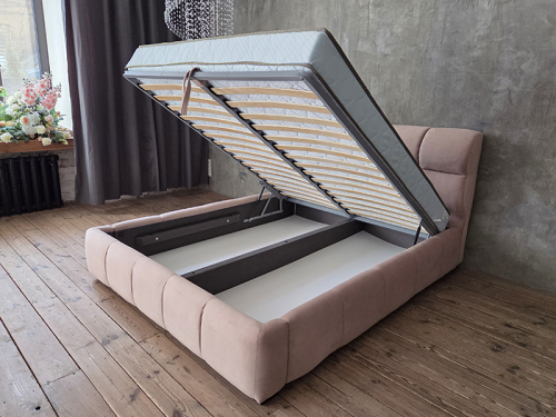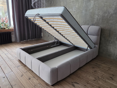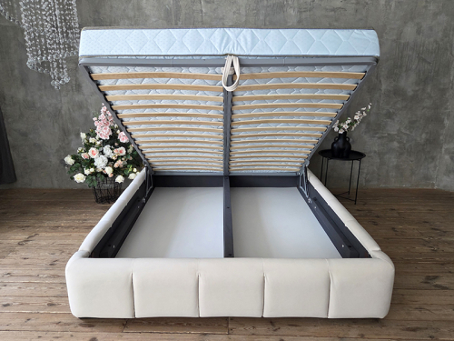 • при выборе комплектации с подъемным механизмом в кровати будет идти цельносварной металлический каркас со встроенными внутрь широкими ламелями, благодаря эту полностью отсутствует проблема их выпадения;