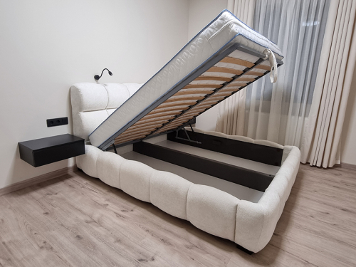 • при выборе комплектации с подъемным механизмом в кровати будет идти цельносварной металлический каркас со встроенными внутрь широкими ламелями, благодаря эту полностью отсутствует проблема их выпадения;
