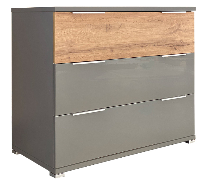 Фасад и корпус данного комода изготовлены из специального ламинированного мебельного ДСП. Комод К-3 имеет 3 выдвижных ящика на телескопических направляющих.