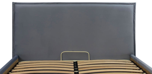 деревянная рамка с ламелями (38 шт) и встроенным матрасом + обитые широкие царги (7,5 см) и широкое изголовье + подъемный механизм с двумя импортными пневмопатронами + бельевой ящик глубиной 18,5 см со спанбондом на дне + пластиковые опоры 5 мм |