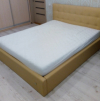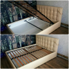 деревянная рамка с ламелями (38 шт) и встроенным матрасом + обитые широкие царги (7,5 см) и широкое изголовье + подъемный механизм с двумя импортными пневмопатронами + бельевой ящик глубиной 18,5 см со спанбондом на дне + пластиковые опоры 5 мм |