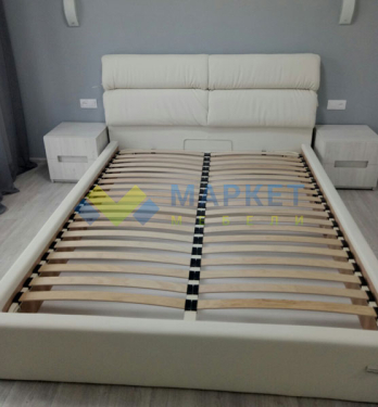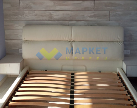 широкое изголовье + металлическая разборная рамка с ламелями (36 шт) + обитые широкие царги (7,5 см) + пластиковые опоры 5 мм |