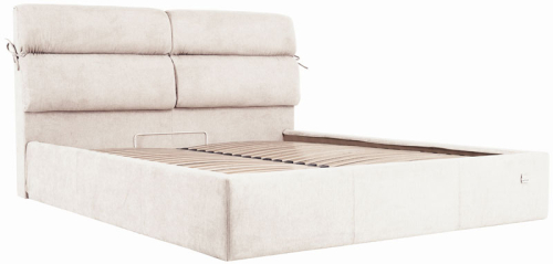 широкое изголовье + широкие царги (6 см) со съемным цельным чехлом на липучках + металлическая цельносварная рамка с ламелями (38 шт) + дополнительная нижняя металлическая цельносварная рамка + подъемный механизм с двумя импортными пневмопатронами + бельевой ящик глубиной 17 см с ламинированным ХДФ на дне + металлические хромированные опоры 4 см |