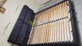 металлическая разборная рамка с ламелями (38 шт) + обитые широкие царги (7,5 см) и широкое изголовье + подъемный механизм с двумя импортными пневмопатронами + бельевой ящик глубиной 18,5 см со спанбондом на дне + пластиковые опоры 5 мм |