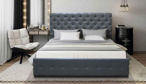 кровать можно заказать как в экокоже, так и в тканевой обивке. На выбор клиента предоставляется более 500 различных вариантов цветов;