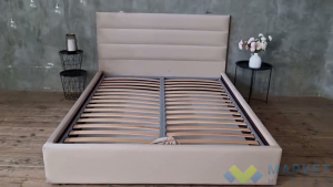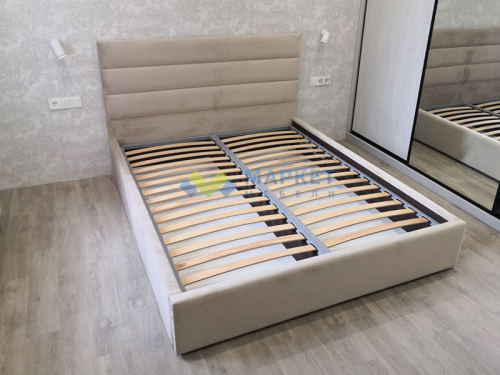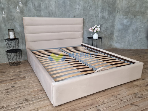Хорошая кровать! Действительно качественная. За месяц пользования я не нашел никаких минусов. Я решил не экономить на ткани, поэтому заказал велюр в бежевом цвете. Также взял подъемный механизм. Ткань хорошо покрывает кровать, прочно прикреплена. Ламели не тонкие, расстояние между ними как раз хорошее.