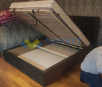 деревянная рамка с ламелями (38 шт) и встроенным матрасом + обитые широкие царги (7,5 см) и широкое изголовье + подъемный механизм с двумя импортными пневмопатронами + бельевой ящик глубиной 18,5 см со спанбондом на дне + пластиковые опоры 5 мм |