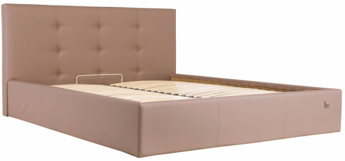 деревянная рамка с ламелями (38 шт) и встроенным матрасом + обитые широкие царги (7,5 см) и широкое изголовье + подъемный механизм с двумя импортными пневмопатронами + бельевой ящик глубиной 18,5 см со спанбондом на дне + пластиковые опоры 5 мм |