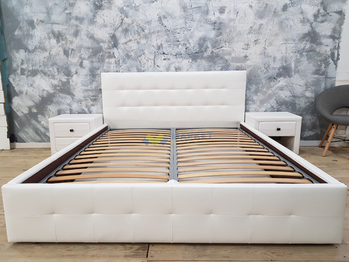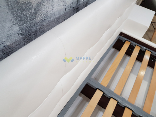 кровать можно заказать как в экокоже, так и в тканевой обивке. На выбор клиента предоставляется более 500 различных вариантов цветов;