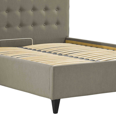 деревянная рамка с ламелями (38 шт) и встроенным матрасом + обитые широкие царги (7,5 см) и широкое изголовье + подъемный механизм с двумя импортными пневмопатронами + бельевой ящик глубиной 18,5 см со спанбондом на дне + пластиковые опоры 5 мм |
