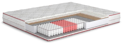• Наполнение: Foam-mix-Coconut coir-Termofiber-Еврокаркас-Pocket Spring усиленный двумя рамками из стали-Termofiber-Foam-mix