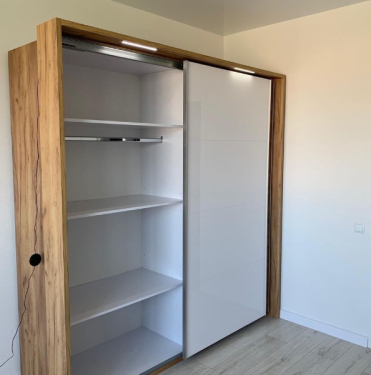 Фасад: трехслойное высокоглянцевое покрытие, высушенное под ультрафиолетовыми лучами. Ламинированная ДСП 18 мм.