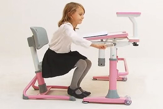 Акомпанувати столу має ергономічне крісло або стілець, розроблені для дітей. Обов'язкове регулювання за висотою та глибиною. Роликові напрямні варто вибирати з функцією самогальмування, коли дитина сіла в крісло, це гарантує додатковий захист і стійкість крісла під час сидіння. Правильне положення дитини під час сидіння за столом: стопи притиснуті до підлоги; коліна зігнуті під кутом 90 градусів; гомілки перпендикулярні підлозі; стегна паралельні підлозі.