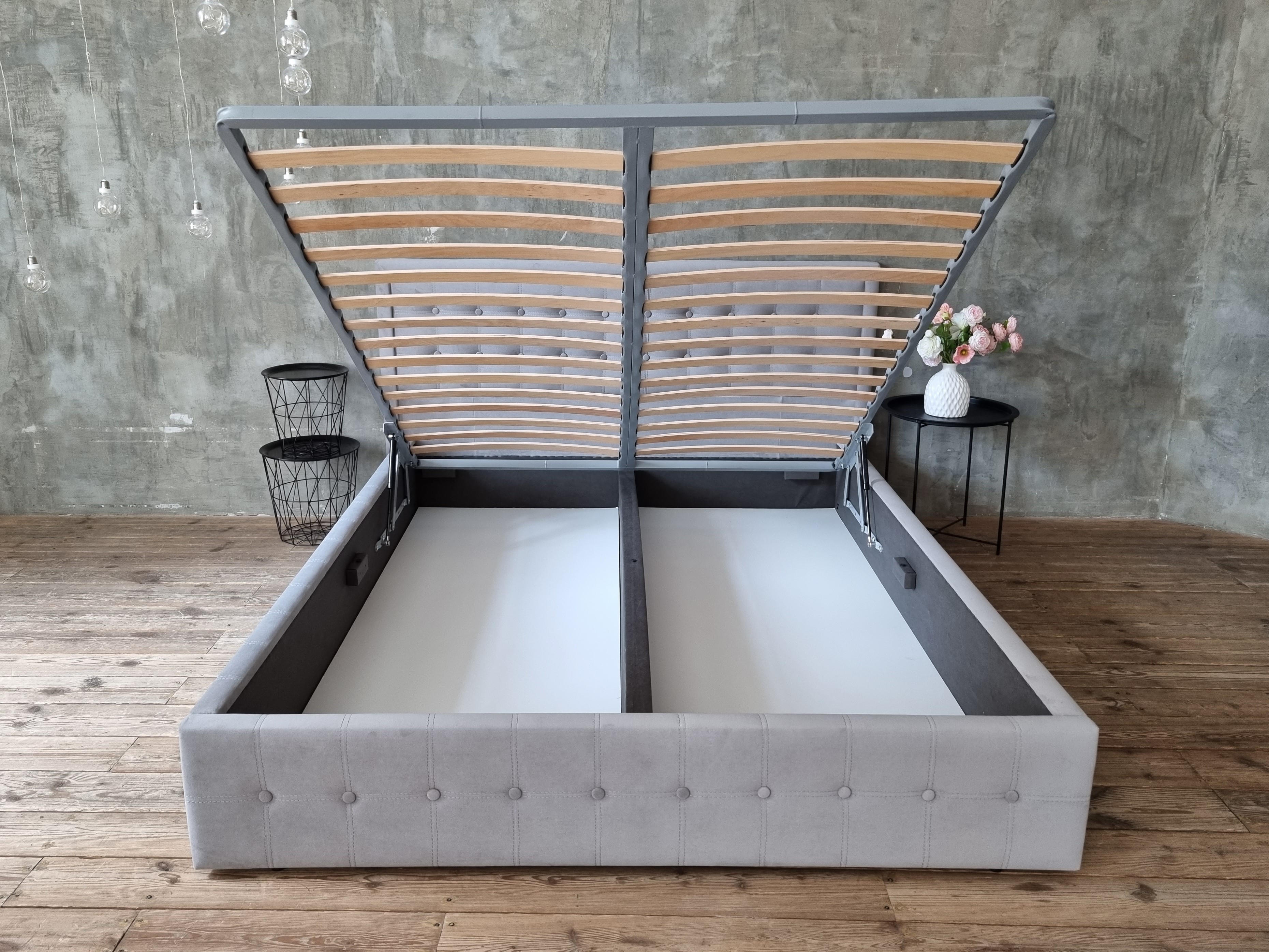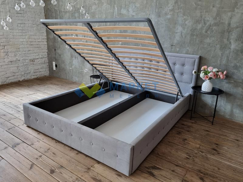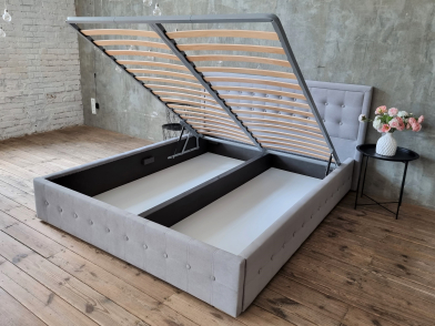 зверніть увагу, що в комплектації з підйомним механізмом у ліжка буде дуже глибокий короб для зберігання білизни, це дуже зручно, фактично у Вас під ліжком буде ціла шафа;
