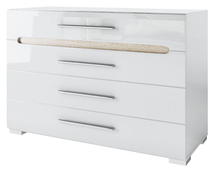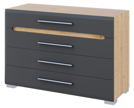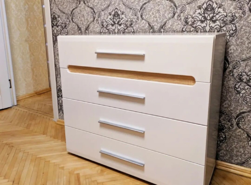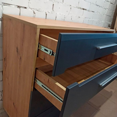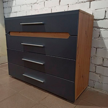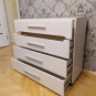 Фасад та корпус даного комоду виготовлені із спеціального сертифікованого меблевого ДСП. Комод КВ-4 має 4 висувних ящики на напрямних повного висування.