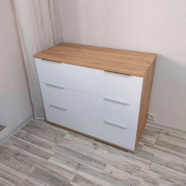 Фасад і корпус даного комоду виготовлені зі спеціального меблевого ламінованого ДСП. Комод Л-3 має 3 висувних ящики на телескопічних напрямних.