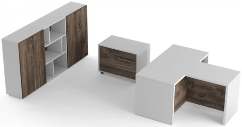 • Комплектація: стіл 140х70х74,3 (76,1) см, брифінг приставка 75х55х74,3 см, тумба мобільна 83,4х50х62 см, шафова група 210х38 см, напрямні - метабокси, ручки - профільний погонаж, опори - роликові