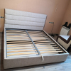 Хороше ліжко! Справді якісне. За місяць користування я не знайшов ніяких мінусів. Я вирішив не економити на тканині, тому замовив велюр в бежевому кольорі. Також взяв підйомний механізм. Тканина добре покриває ліжко, міцно прикріплена. Ламелі не тонкі, відстань між ними якраз хороша.