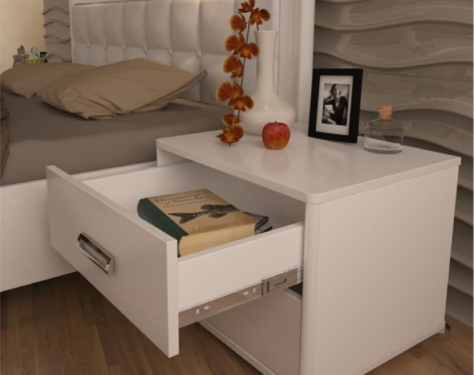 Фасад та корпус даної тумби виготовлені зі спеціального меблевого ламінованого ДСП. Приліжкова тумба Б-1 має 2 висувних ящики на телескопічні напрямні.