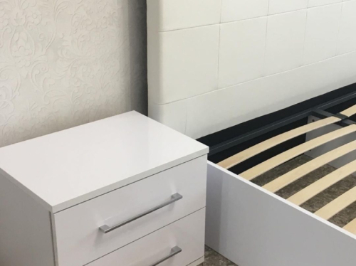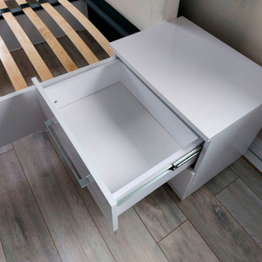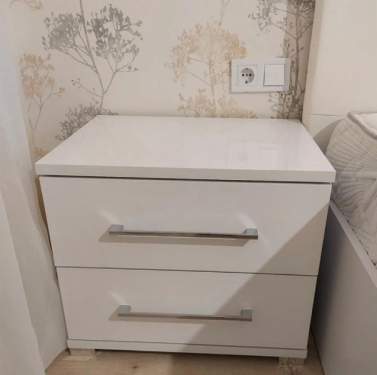 Фасад та корпус даної тумби виготовлені зі спеціального меблевого ламінованого ДСП. Приліжкова тумба Ф-1 має 2 висувних ящики на телескопічні напрямні.