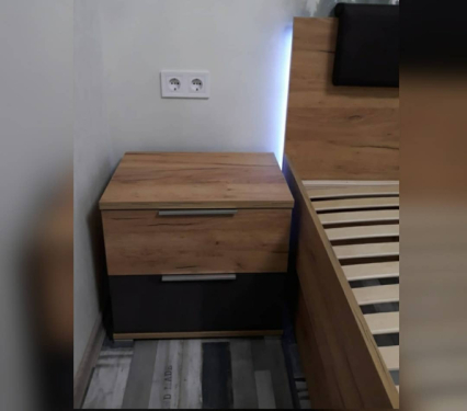 Фасад та корпус даної тумби виготовлені зі спеціального меблевого ламінованого ДСП. Приліжкова тумба Р-1 має 2 висувних ящики на телескопічні напрямні.