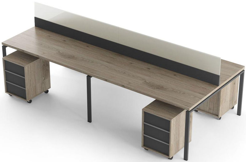• Комплектація: тумба мобільна 4 шт. 43,7х50х62 см, напрямні - метабокси, ручки - профільний погонаж, опори роликові, перегородка столу - ДСП+скло