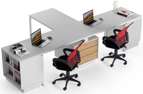 • Комплектація: столи 2 шт. 170х70х74,3 (76,1) см, тумба 1 шт. 70х50х62,9 см, низькі шафи 2 шт. 70х50х74,3 (76,1) см, брифінг приставка 1 шт. 100х70х74,3 см
